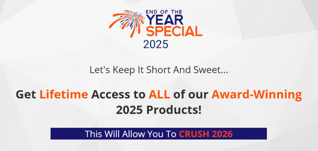 In simple terms, it’s lifetime access to ALL of their award-winning 2025 products in one bundle.